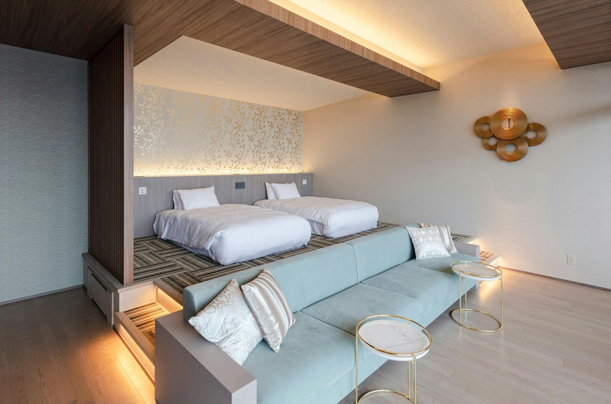 スーペリアルームの「ジャパニーズモダンリゾート」では、 天竜杉で作ったクラフトアートを飾るなど、お部屋のコンセプトによって、デザインやインテリアが変わるため、どんなお部屋に宿泊するかは当日のお楽しみです。